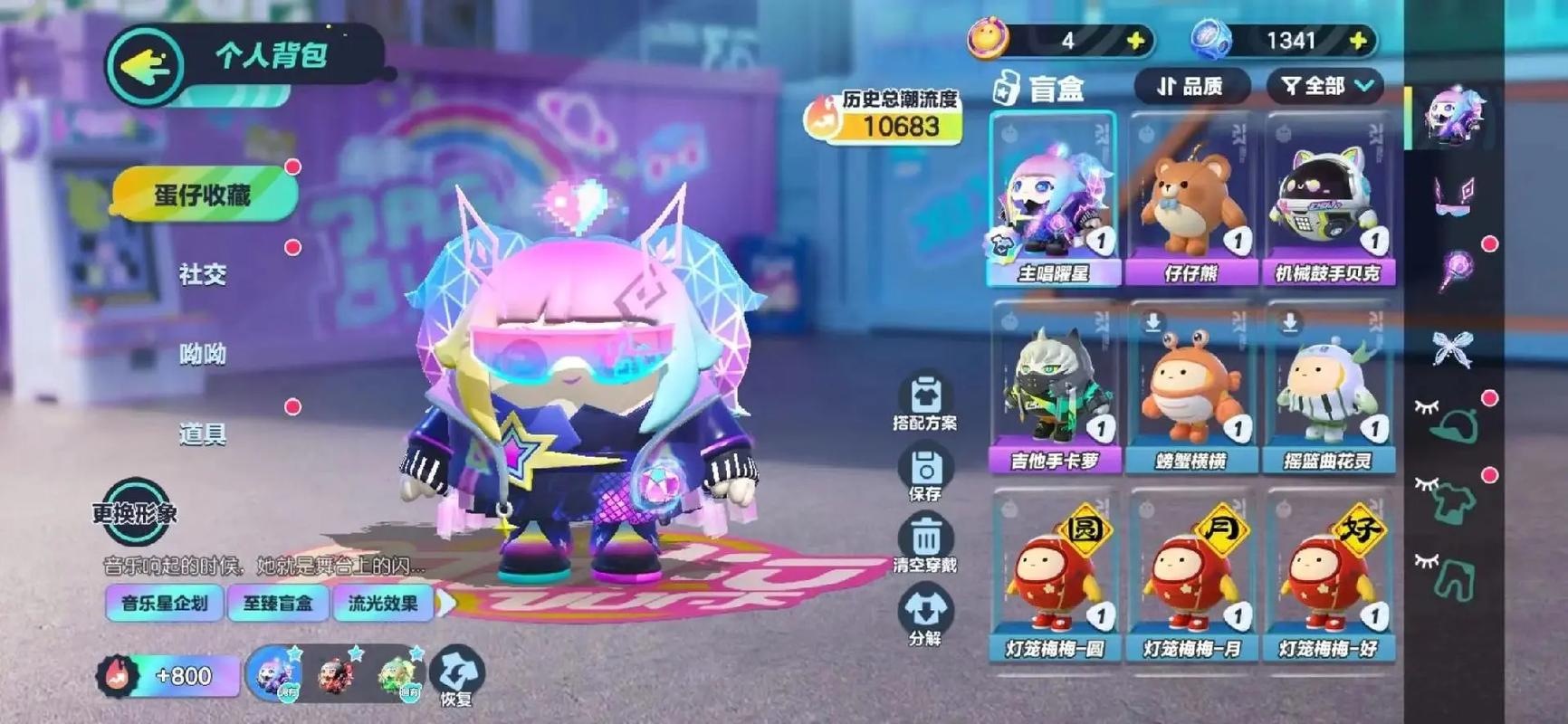 段位等级:巅峰凤凰蛋,至臻盲盒:玉龙扶风,主唱曜星,醒狮蛋宝,精灵莉斯尔;典藏盲盒:萌兔阿奇,菠萝吹雪,狐狸公子,北极兔卢米,雪怪瓦图鲁,极光女神典伊,音乐家蕾利,飞天小猪班尼,发美美,暹罗猫,大娃,流浪小象哆哆,熊二;隐藏盲盒:极光女神典伊;联动盲盒:梅海海,懒羊羊,吾皇猫,巴扎黑,红小豆,DongDong,小灰灰;翅膀:绘山河折扇,醒狮靠旗;详情看图【安卓】【自主截图】