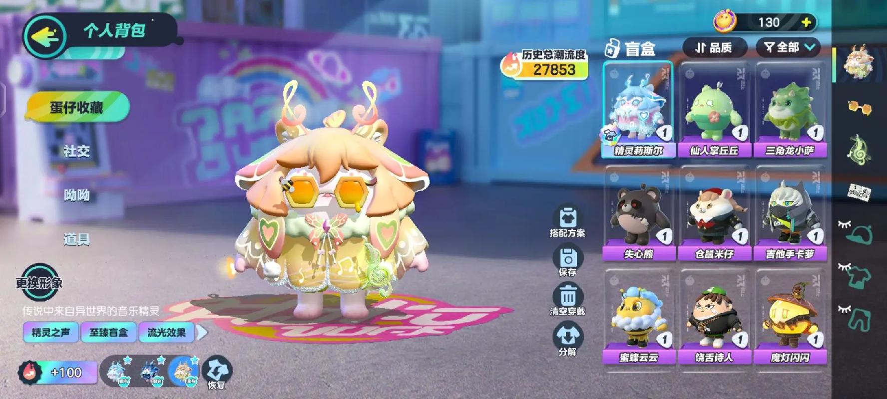 段位等级:超级凤凰蛋,典藏盲盒:虎皮卷大灰狼,茨木童子,刺猬绷绷,袋鼠嘟宝,雪怪瓦图鲁,元气丸子,极光女神典伊,飞天小猪班尼,豫剧少女嫣然,鲤鱼姬小锦,打菜侠妙妙,小福袋添运,猴吼吼,暹罗猫,面包狗松松,石心船长苏勒,执法官布谷,莓莓甜心兔,大娃,劝学小子,超燃蛋小绿,柠檬汽水啵啵,熊二,小浮冰;隐藏盲盒:极光女神典伊;联动盲盒:小灰灰,美羊羊,沸羊羊;翅膀:月白之隐,浅海蓝灵,音浪星梦,天使·微光;动作:甩手舞;游戏道具:限定盲盒染色剂;详情看图【安卓】【自主截图】
