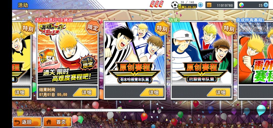 队长小翼:最强十一人2025-10-25 12:17在《队长小翼:最强十一人》这款游戏中,金币是非常重要的资源,它在球员训练、觉醒等多个方面都有着不可或缺的作用。以下是一些快速获得金币的方法:
