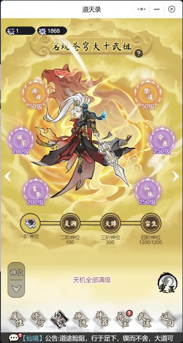 道天录2025-10-29 22:00《道天录》是一款深受玩家喜爱的修仙类游戏,其丰富的游戏内容和独特的玩法吸引了众多玩家的关注。在游戏中,机缘和源力灵石是非常重要的资源,它们可以帮助玩家提升实力、加速修仙进程。以下是一些获取机缘1w和源力灵石30W的途径: