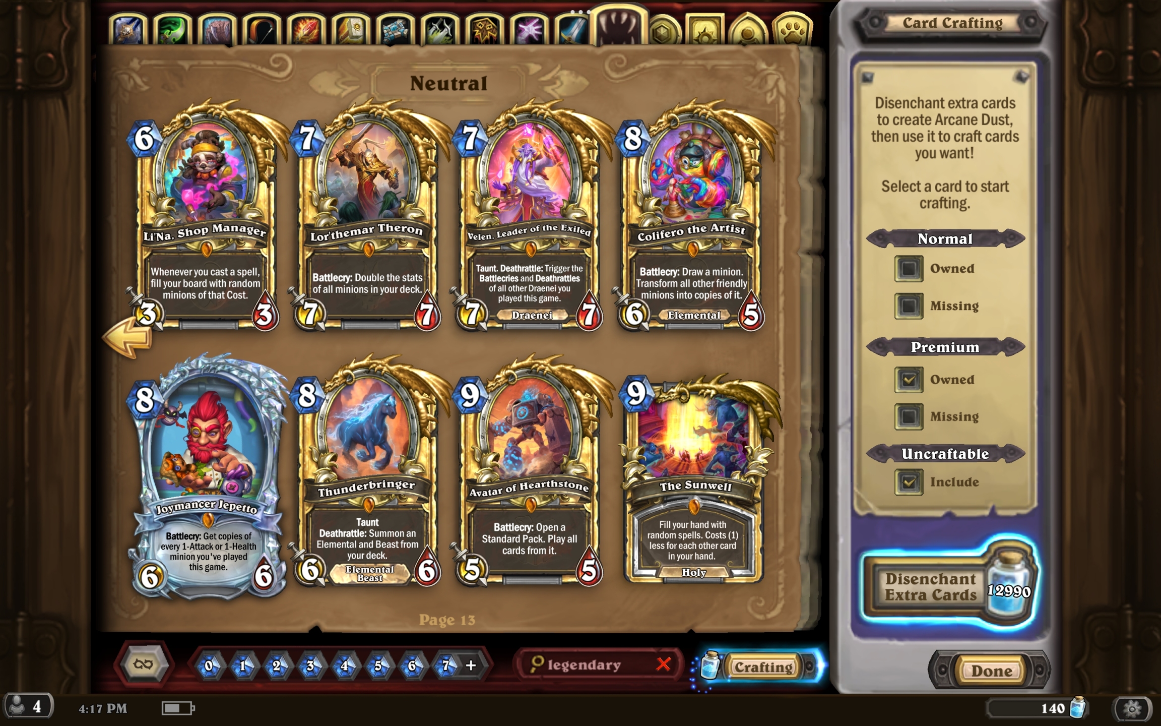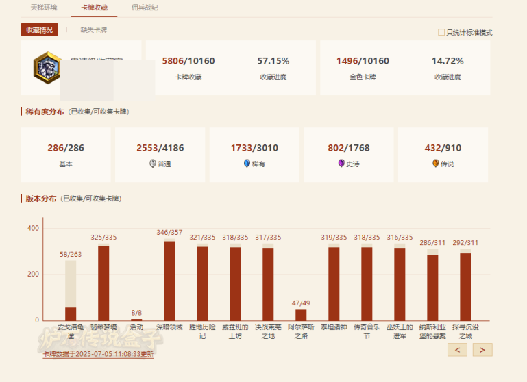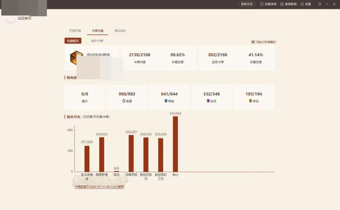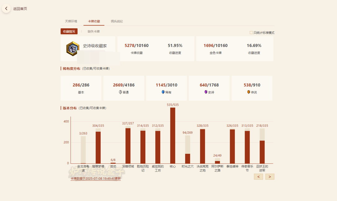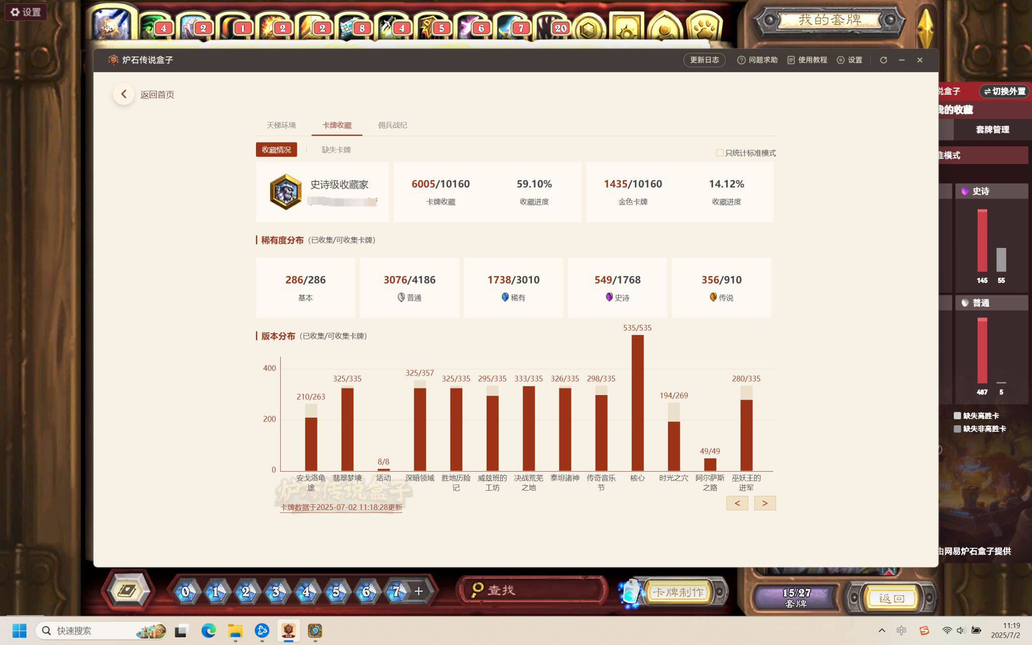 粉尘38640,卡牌6005张,传说356张,史诗549张;英雄皮肤总数:95【自主截图】