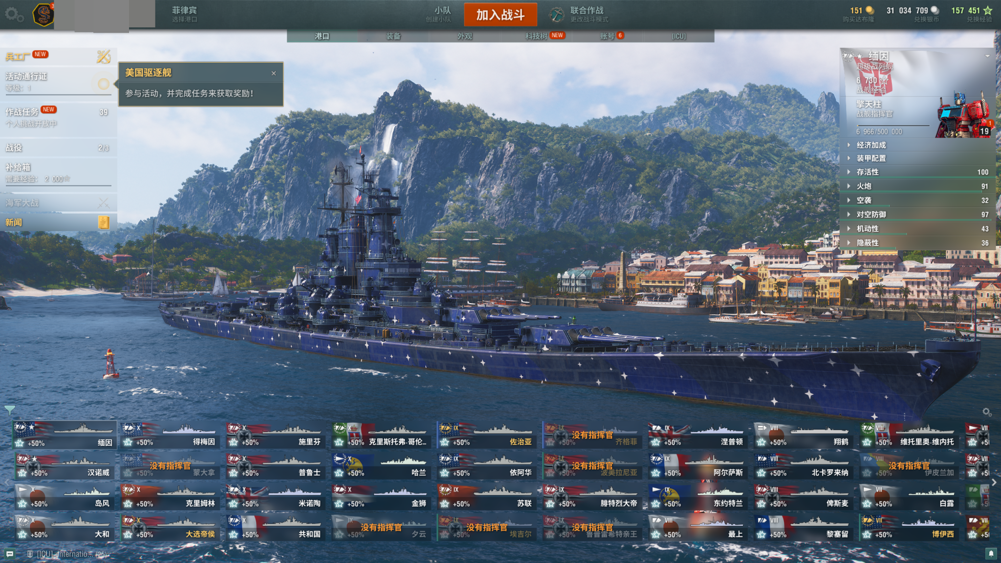 Z867战舰世界美服大圣诞、圣诞传奇霸业、9刚、ARP大和、ARP武藏、变形金刚涂装(凛洌之风-北上)、司马 、雷神、斯莫兰、港口战舰458个、超级战舰全齐、传奇舰长基本都有、联动舰长84个、联动涂装74个、