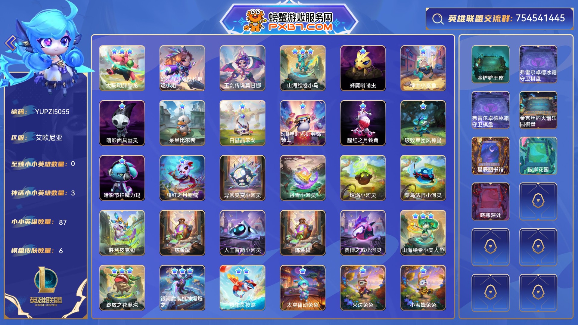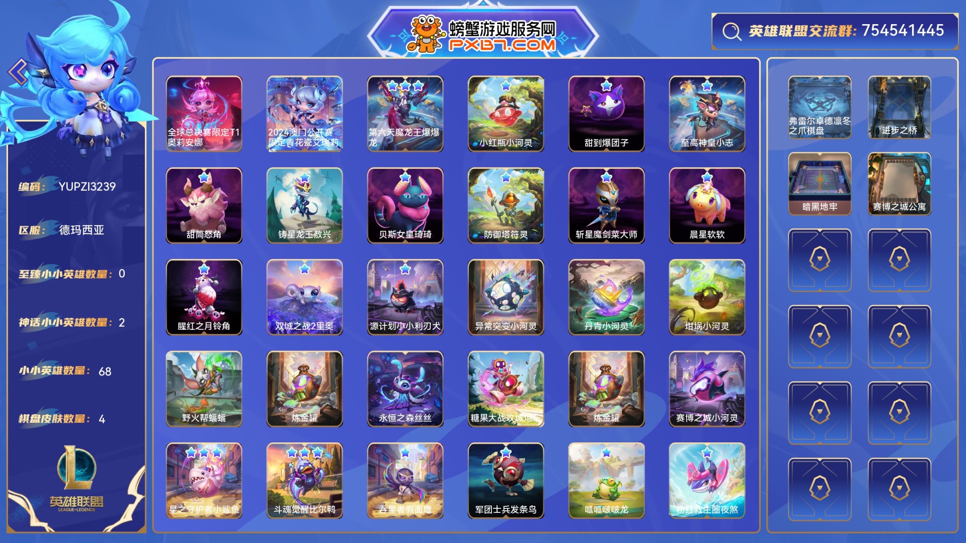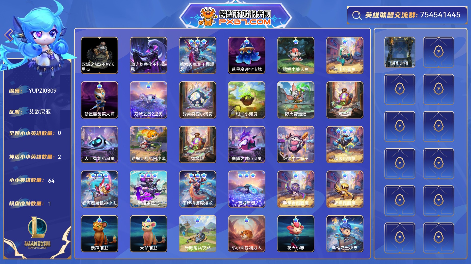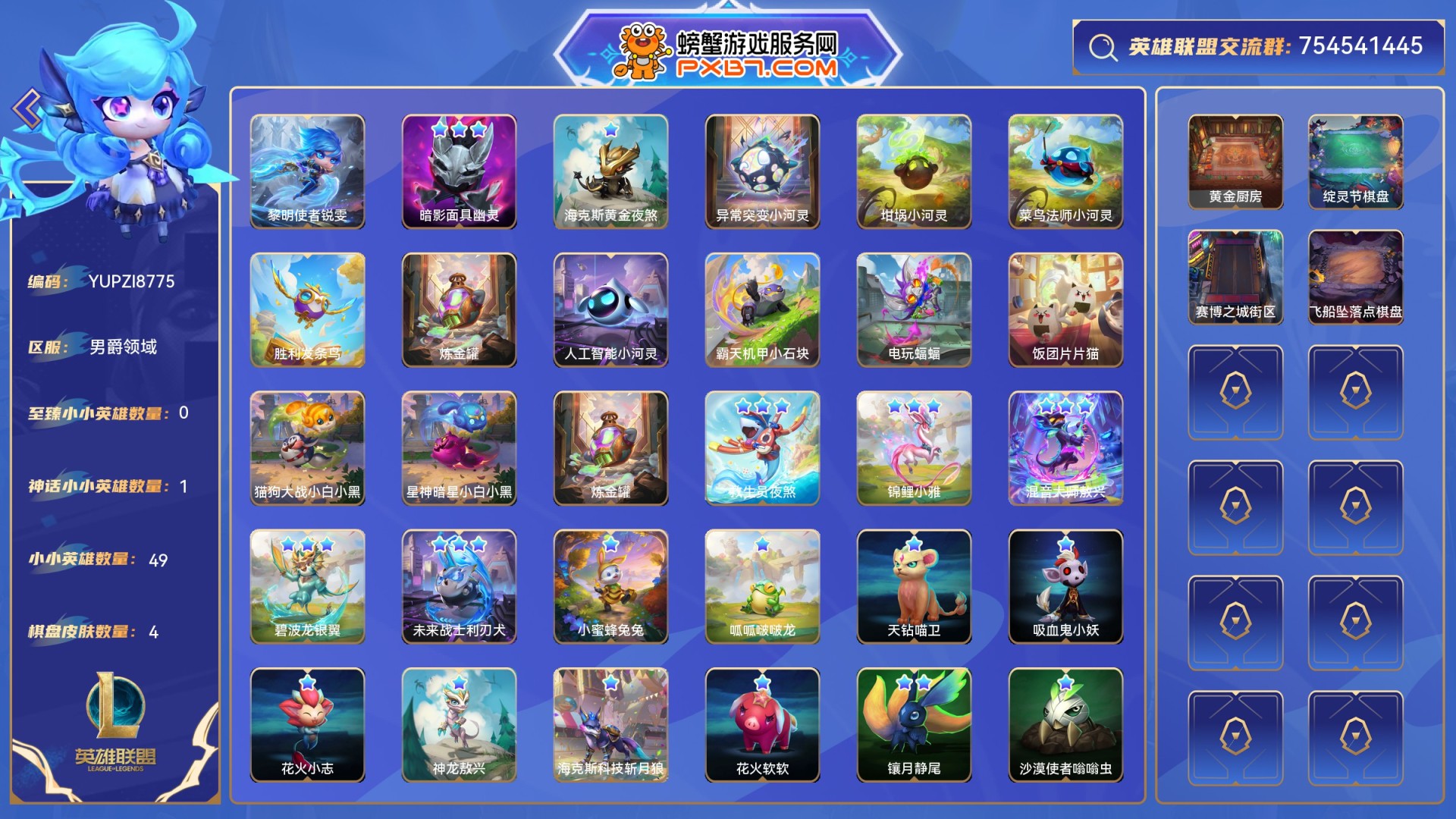 1至臻小小英雄,2神话小小英雄,1神话棋盘皮肤,354小小英雄,30棋盘皮肤,54进攻特效,